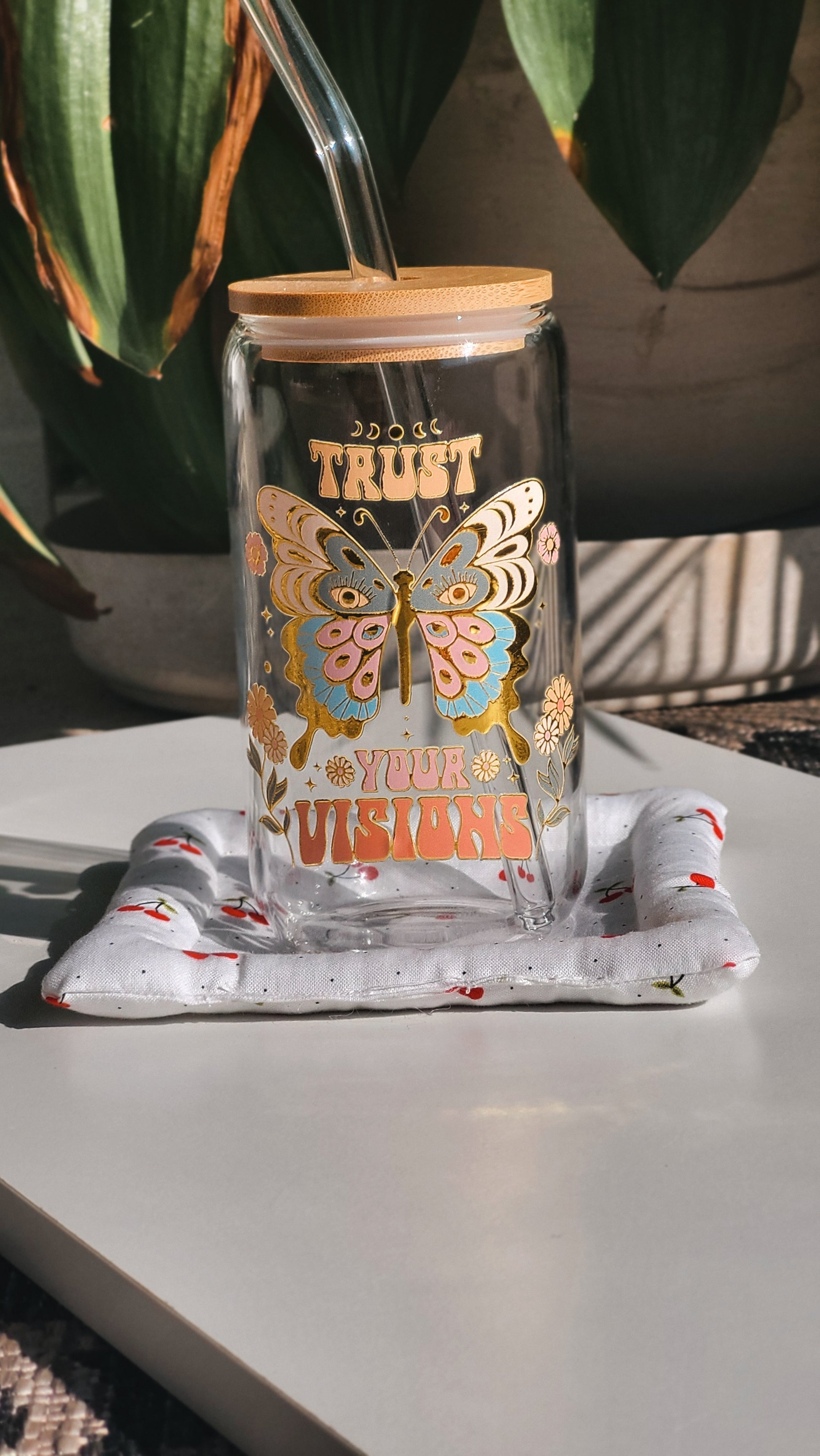 Add a pop of fun to your table with our Cherry Pattern Cloud Coasters! These handcrafted puffy coasters are not only unique in design, but also provide a sturdy surface for your drinks. Perfect for protecting your surfaces and adding a touch of quirkiness to any room. Cheers!